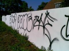 Graffiti Tags removed from painted wall by G.R.S
