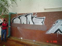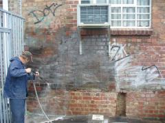 Graffiti Tags being removed from face brick by G.R.S