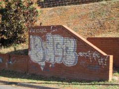 Graffiti Tags removed from face brick retainer wall by G.R.S