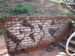 Graffiti Tag removed from face brick barrier wall by G.R.S
