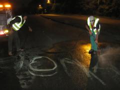 Graffiti Tags being removed from tar road surface by G.R.S |