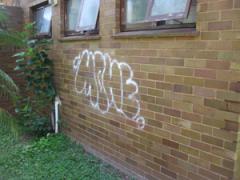 Graffiti writing and markings removed from raw face brick by G.R.S