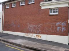 Graffiti removed from pre-cast concrete wall by G.R.S