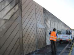 Graffiti removal and high pressure cleaning of concrete embankment wall by G.R.S
