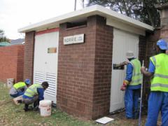 Graffiti Tags being removed from face brick by G.R.S
