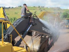 High pressure cleaning and degreasing of heavy earthworks machinery by G.R.S